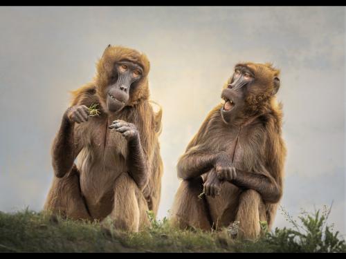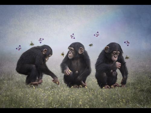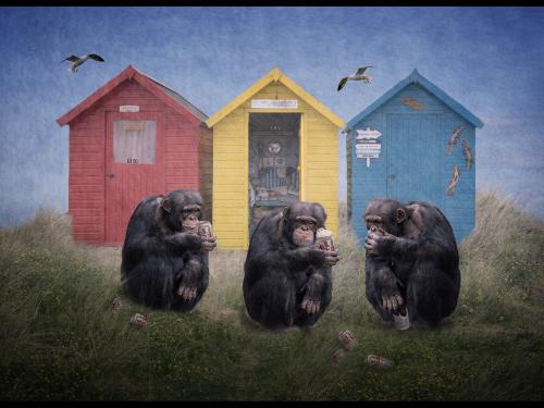 "Cheeky Chimps On A Seaside Sip"