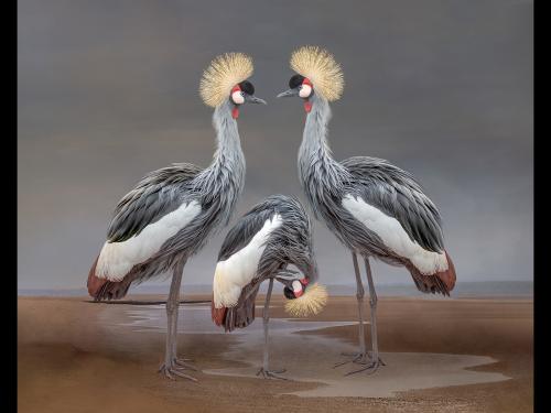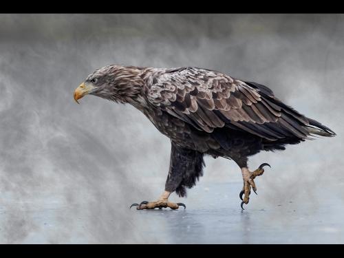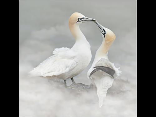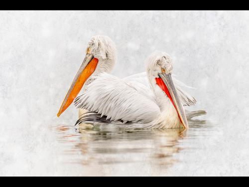 "Pelicans In The Mist and Snow"