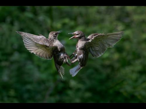 "Juvenile Starling Squabble"