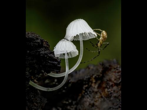 "Orb Spider on Mycena"