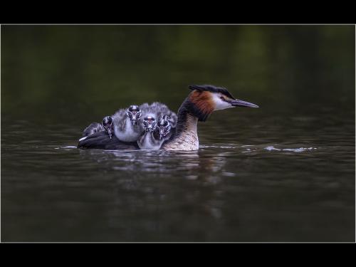 "Great Crested Grebe Carrying Young"