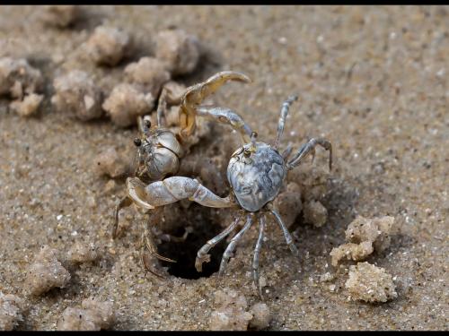 "Fighting Sand Bubbler Crabs"
