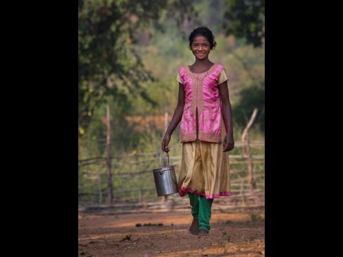 "Indian Village Girl Carrying Water "