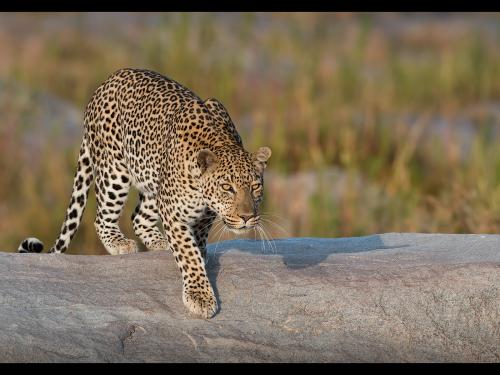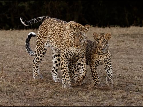 "Leopard Guarding Cub"