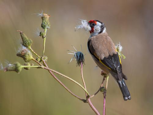 "Goldfinch With Nest Material"
