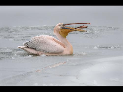 "Pelicans Lunging For The Fish"