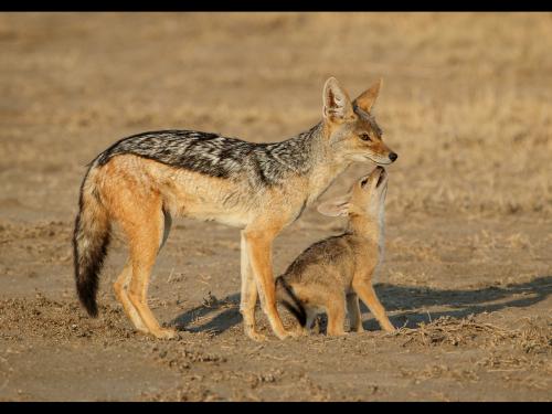 "Black-Backed Jackal With Her Pup"
